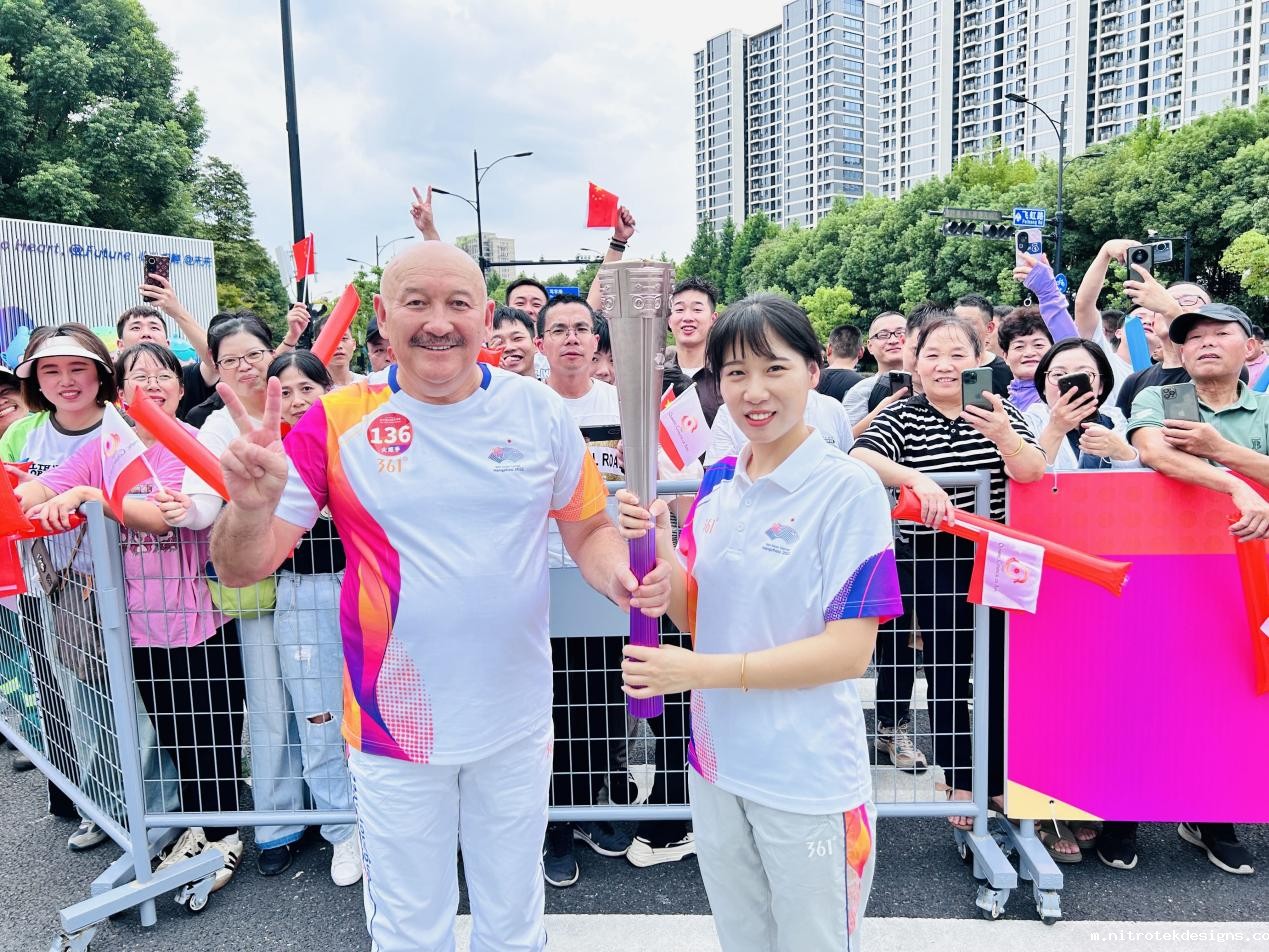 9月20日亚运会火炬传递杭州站,徐丽香非常荣幸地协助哈萨克斯坦奥委会代表Ilsiyar Kanagatov先生参加火炬传递,为这位“哈萨克斯坦共和国体育运动事业发展功勋”奖章的获得者一对一提供衔接服务和陪同翻译,最终以自己热情周到的服务受到了Ilsiyar Kanagatov先生的点赞。