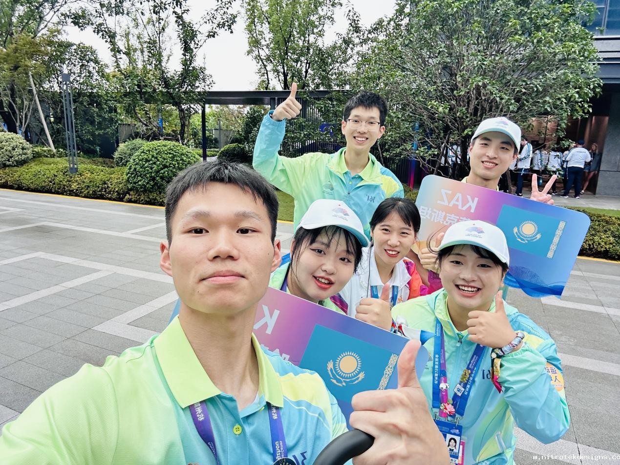 在第19界杭州亚运会期间我校西方语言学院徐丽香老师在亚运村志愿服务中心工作,担任哈萨克斯坦代表团助理团队的领队教师,带领十五名“小青荷”一起对接和协助哈萨克斯坦奥委会代表团团长等人的各项工作。
