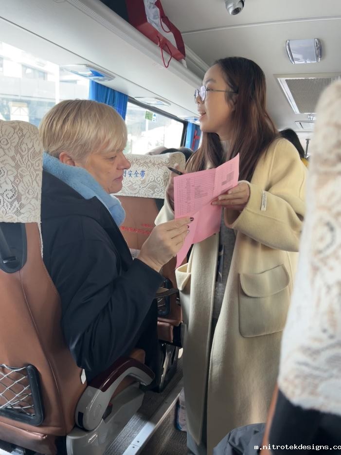 图6:翻译系学生陈国苗为驻华外交官及使节夫人们在路上提供陪同口译