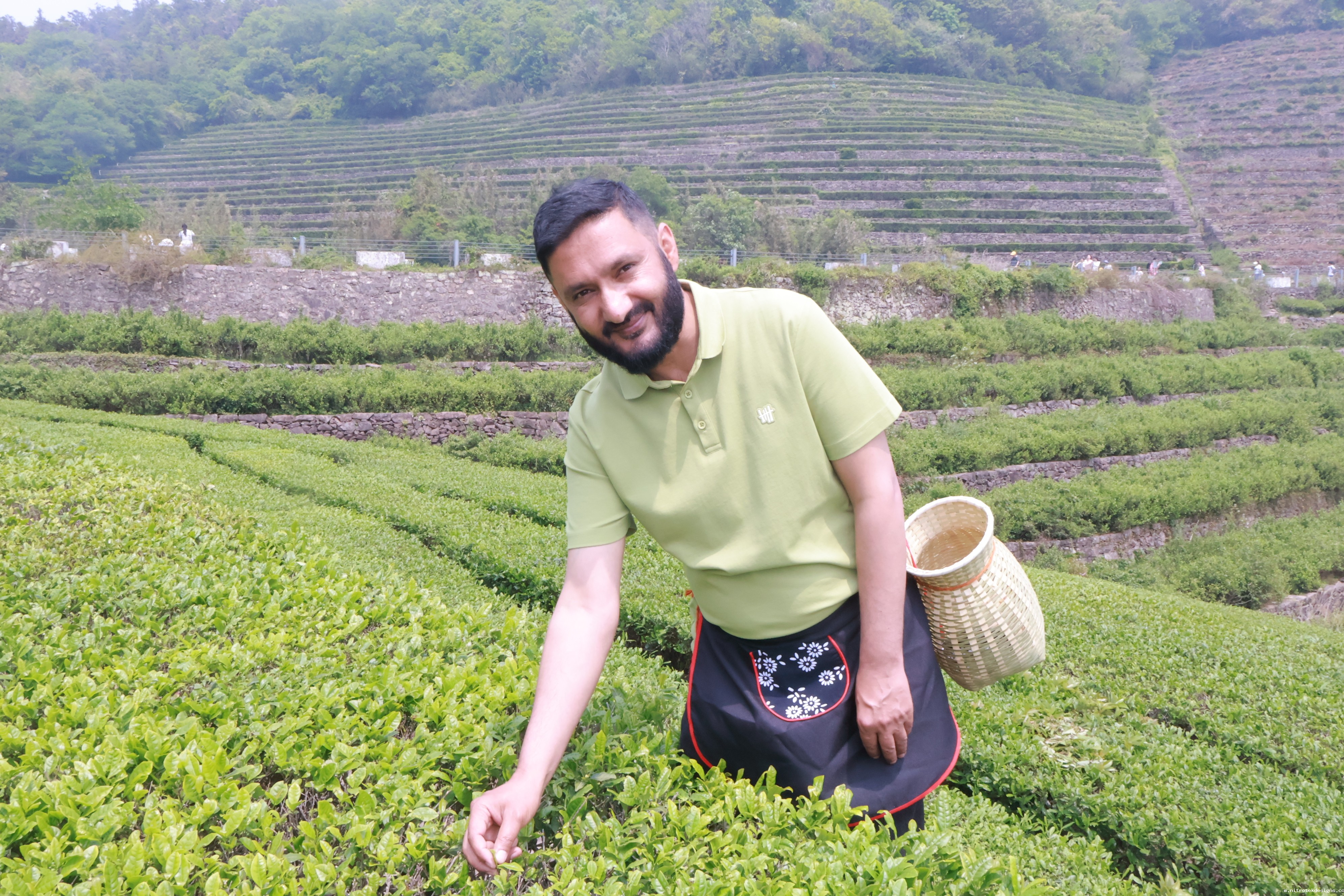 活动首站来到东钱湖畔的福泉山茶园。外籍教师们在茶农的指导下,戴上斗笠、挎上竹篓,学习采摘明前茶青的技巧。“一芽一叶,轻提轻放”的采摘口诀让外教们感受到了来自茶叶扑面而来的清香和芬芳。采茶结束后,外籍教师们还参与了炒茶、品茶环节,氤氲茶香中体悟中国传统文化的独特魅力。