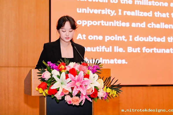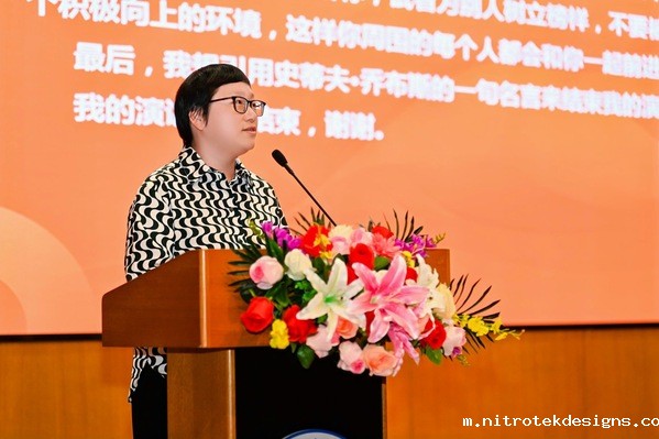 王慧老师与Kaylie TAN老师作为教师代表发言。“进入大学之后同学们将从知识的被动接受者,转变为主动的知识探索者和创造者。”王慧老师寄语新生,要学会做一个靠谱的人,不仅要提升自身的专业素养,也要建立别人对自己的认同和信任。要做一个遵从内心的人。Kaylie TAN老师指出:“我们的个性、知识和智慧决定了我们的愿景、方向和道路,这将使我们成为更好的自己”,希望同学们能不断接纳、适应、进步,用知识、技能、能力和经验来提升和丰富自己,充分发挥自己的潜力,成为自己能够成为的人。