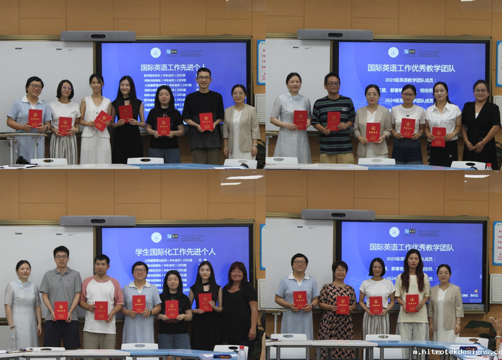 王满英老师介绍了新入职教师,为学院的师资队伍注入了新的活力。会上针对国际英语工作、学生国际化工作、就业工作及人才培养等方面表现突出的个人和团队进行了表彰。