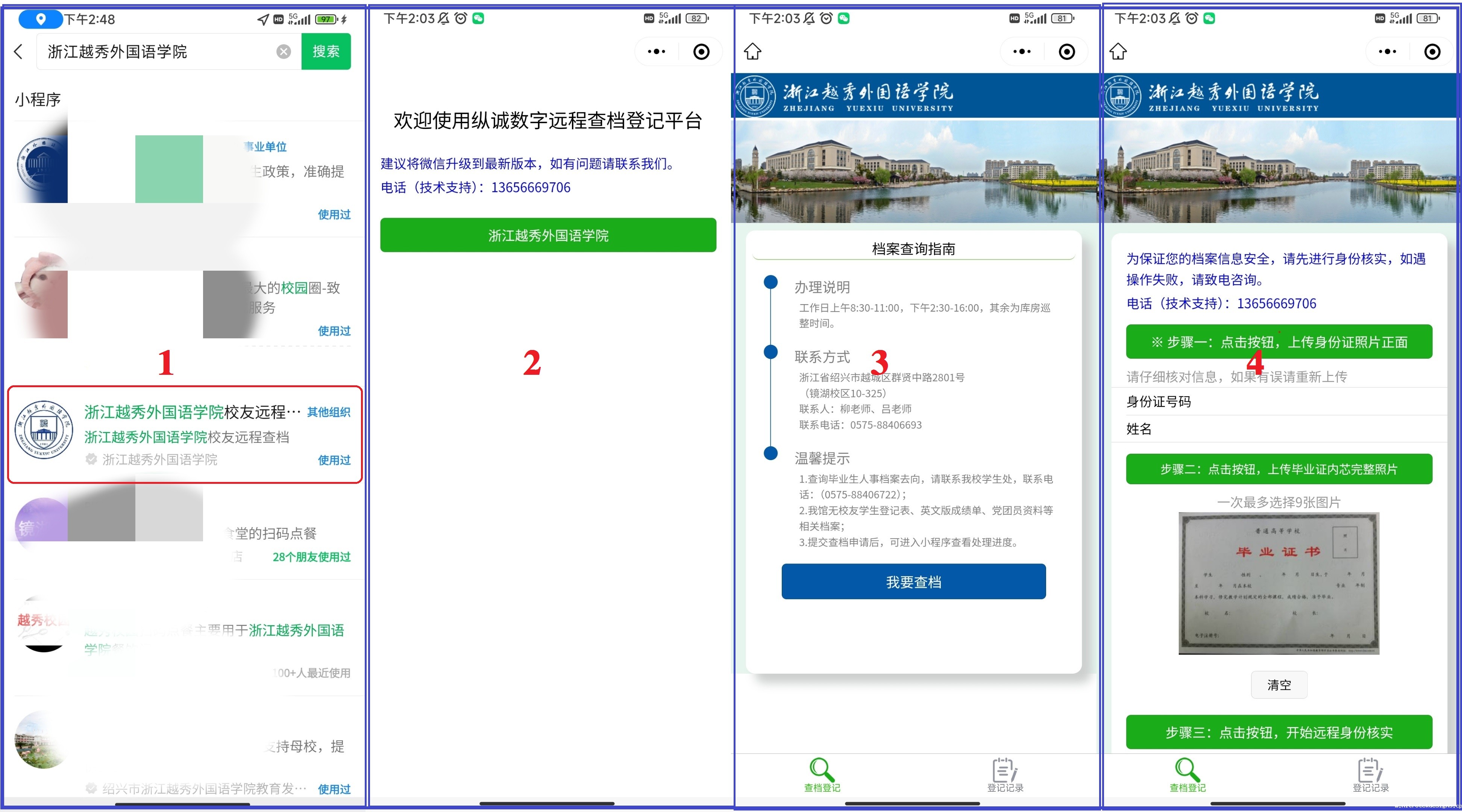 为更好服务校友,学校首个官方微信小程序:“星空app官方网站登录入口校友远程查档”正式上线。校友只要在手机微信-“发现”-“小程序”里检索:“浙江越秀外国学院”或“远程查档”,就能轻轻松松找到带学校logo的小程序:“星空app官方网站登录入口校友远程查档”,具体步骤如下图所示: