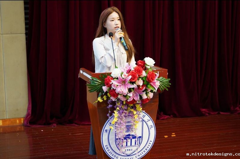 应用英语系学生董安琪同学作为老生代表发言。她分享了自己的学习经验、积极参与学校的各种活动比赛以及暑期前往马来西亚学习的经历,鼓励同学们通过自己的努力成为优秀的外语学习人才。