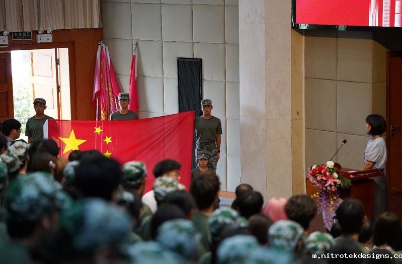 在庄严的国歌中,教官队带着国旗走来,同学们全体起立,肃然起敬面向国旗唱国歌,展现了应外学子良好的精神风貌。