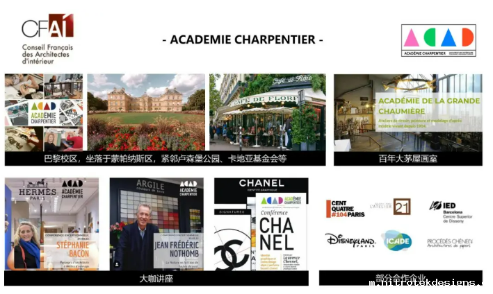 由百年艺术世家Charpentier夏庞蒂埃家族创办的高等艺术院校,受法国室内建筑师委员会(CFAI)认证,致力于培养设计、艺术、文化管理类的优秀人才。自有仍在开放的百年历史的大茅屋画室,见证了毕加索、夏加尔、常玉、吴冠中等艺术巨匠的冉冉升起。