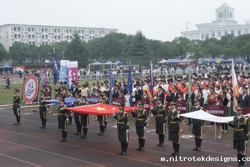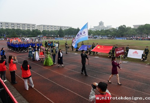 开幕式现场,教官队组成的国旗方阵队,踏着威严的正步、高举飘扬的国旗,向在场的每一位观众展现他们飒爽的英姿。校旗方阵队、会徽方阵队、裁判员方阵队、各学院代表队以及校友代表队依次出场,他们昂首挺胸、神采飞扬。