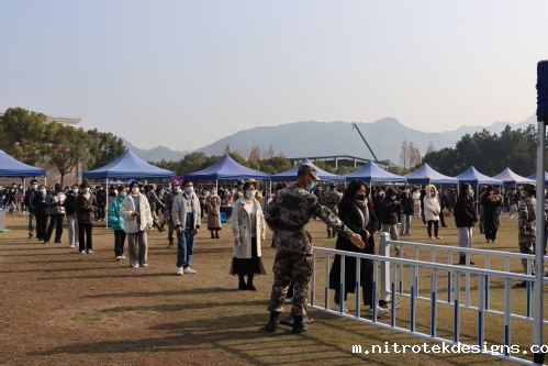 疫情吃紧,时间紧迫。12月12日在接到正式通知后,学校紧急制定检测方案,各部门通力合作,短短半天多时间,场地物资全部到位,人员通知也全部落实,校内工作人员也接受了线上培训。13日下午,主要来自绍兴市稽山街道卫生院、东浦街道卫生院的医务人员,在两校区31个检测站点,迅速完成了核酸检测采样工作。