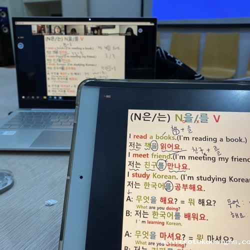 短短的五天活动令我们收获颇多。线上交流,都以小组讨论的形式开展。韩国主讲人会风趣活泼地介绍展示韩国文化,鼓励同学们自由讨论,抒发自己的见解。初步学习了韩语音标以及语法规则,同时也领略了韩国的K-POP文化、餐饮文化等等。