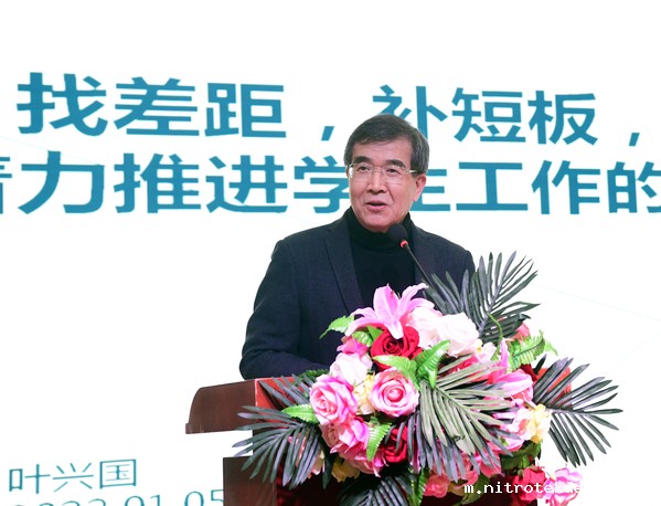 叶兴国发表题为《找差距、补短板、再发力,着力推进学生工作的高质量发展》的重要讲话。他说习近平总书记寄语和希望广大青年学生和教师要有使命感:学生要立大志、明大德、成大才、担大任,努力成为堪当民族复兴重任的时代新人;教师要以德立身、以德立学、以德施教;广大思想政治理论课教师政治要强、情怀要深、思维要新、视野要广、自律要严、人格要正。我校在2021年的建设和发展中,围绕审核评估,已完成和推进多项重点工作,但是还需要对标对表找短板。学生工作方面要加强思想政治理论课教师队伍和思政课程建设;要加强学风建设,教育引导学生爱国、励志、求真、力行;要加强学生综合应用知识的能力和独立解决生产、管理和服务中实际问题的能力。各部门、各处室、各学院应以问题为导向,精准施策,明确责任,务实笃行,要解决真问题,不要花拳绣腿;要持续用力,才能久久为功。