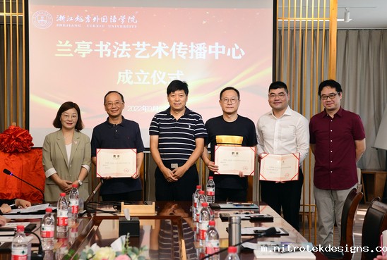 副校长葛金玲宣读成立文件和聘任文件。兰亭书法艺术传播中心聘任陈理平为顾问;梁文斌为名誉主任;魏小琳、倪七一为中心主任;王景、谢权熠为中心副主任。中心下设秘书处,杨叶玲为秘书长、朱良为副秘书长。中心聘任王旭初、洪朝阳、赵技峰、杨曙、章夏明、何中梁、沈宏炎、朱良为首批特邀研究员。