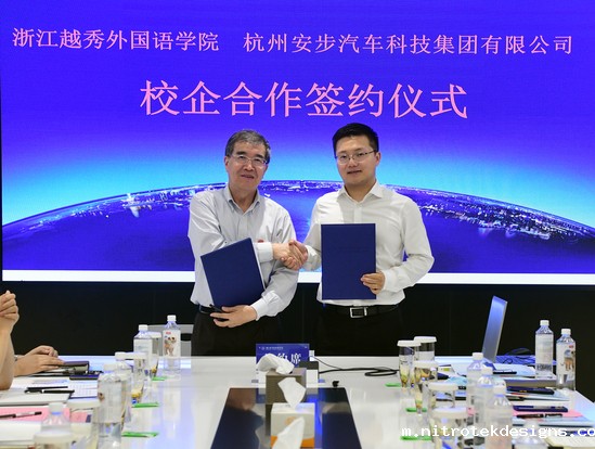 在与会专家、领导的见证下,叶兴国校长分别与安步汽车科技集团有限公司、杭州来赞宝集团签订了校企合作协议。