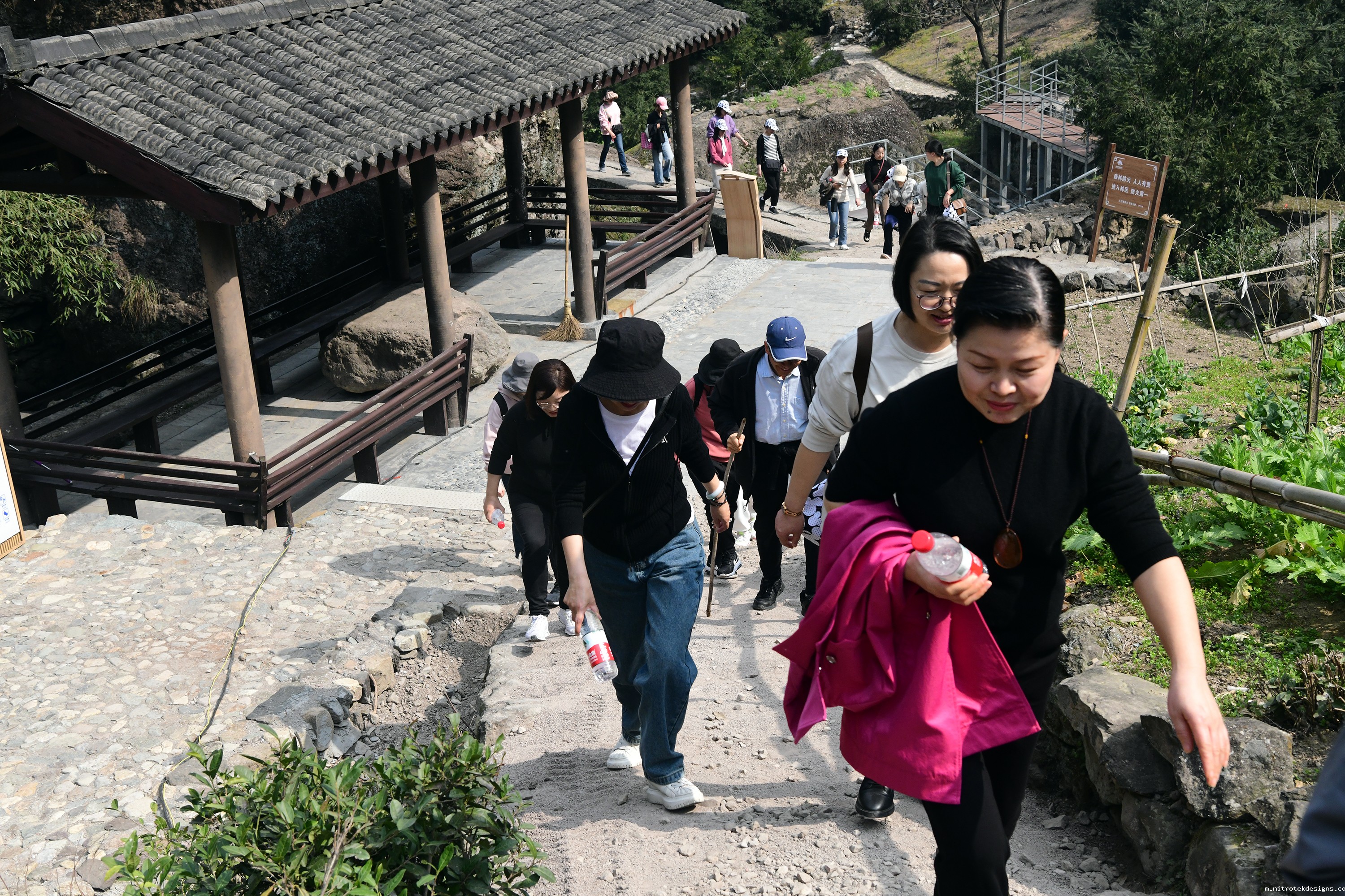 老师们沿着古道而上,迎着和煦的春风,在欢声笑语中感受大自然的靓丽景色。