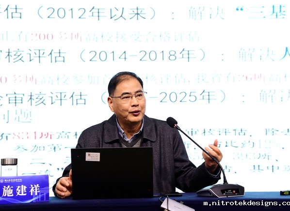 施建祥教授作了新一轮审核评估的解读报告。他结合我国高等教育评估发展历程、时代背景和基本要求,提出与上一轮审核评估相比,新一轮审核评估实现了十大转变,并对新一轮审核评估的理念、方法与指标体系等方面进行了详细介绍,对自评报告撰写作了指导。