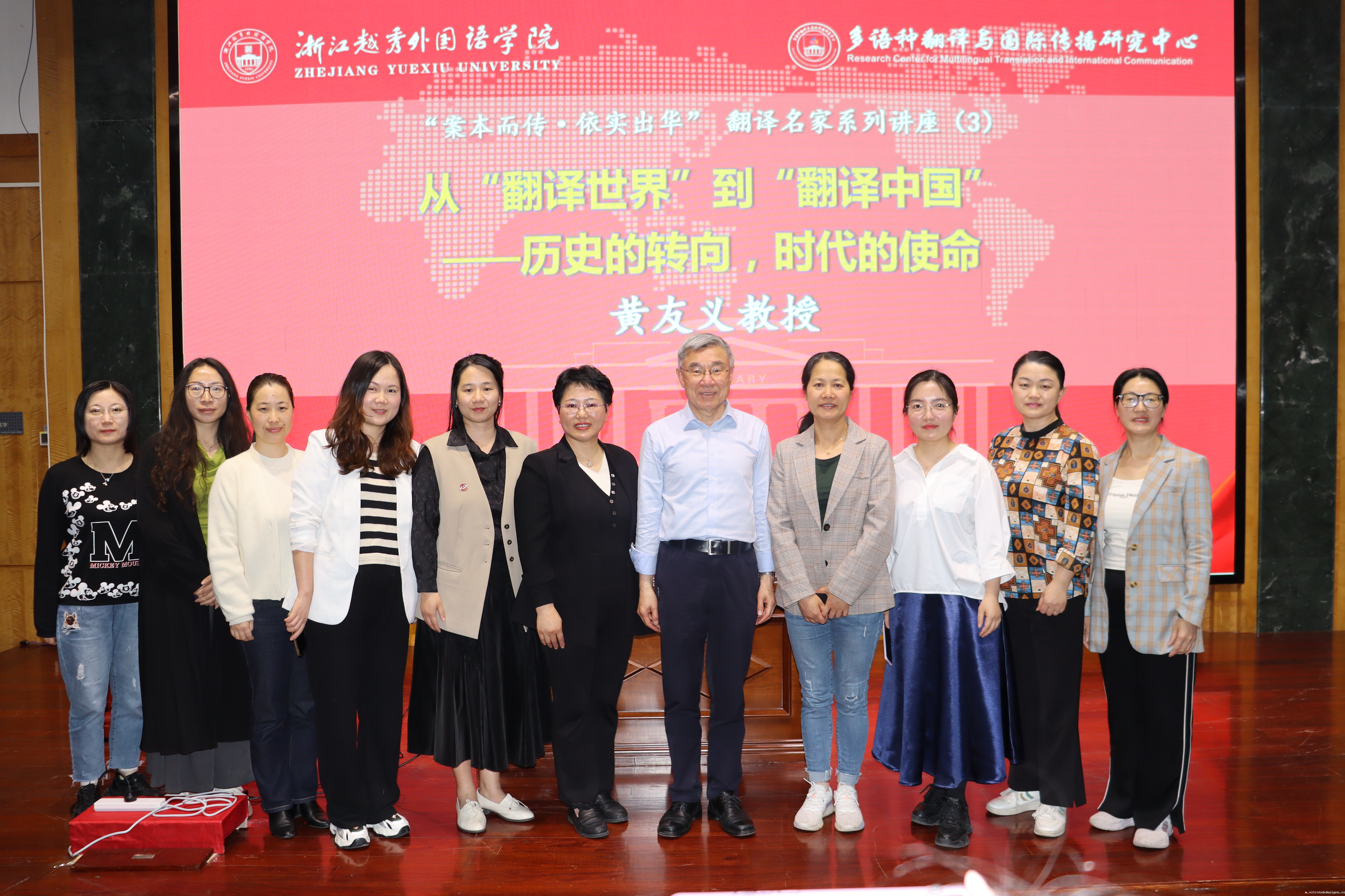 5月12日下午,由英语学院和教师发展中心共同组织的“翻译名家系列讲座”第三讲在我校图书馆报告厅隆重举行。中国翻译协会常务副会长、全国翻译资格(水平)考试英语专家委员会主任、我校多语种翻译与国际传播研究中心名誉主任兼顾问委员会主席黄友义教授应邀进行讲座,题为《从“翻译世界”到“翻译中国”——历史的转向,时代的使命》。本次活动由我校人事处副处长、教师发展中心主任费群蝶主持,英语学院陈科芳院长总结,参会师生近200余人,反响热烈。
