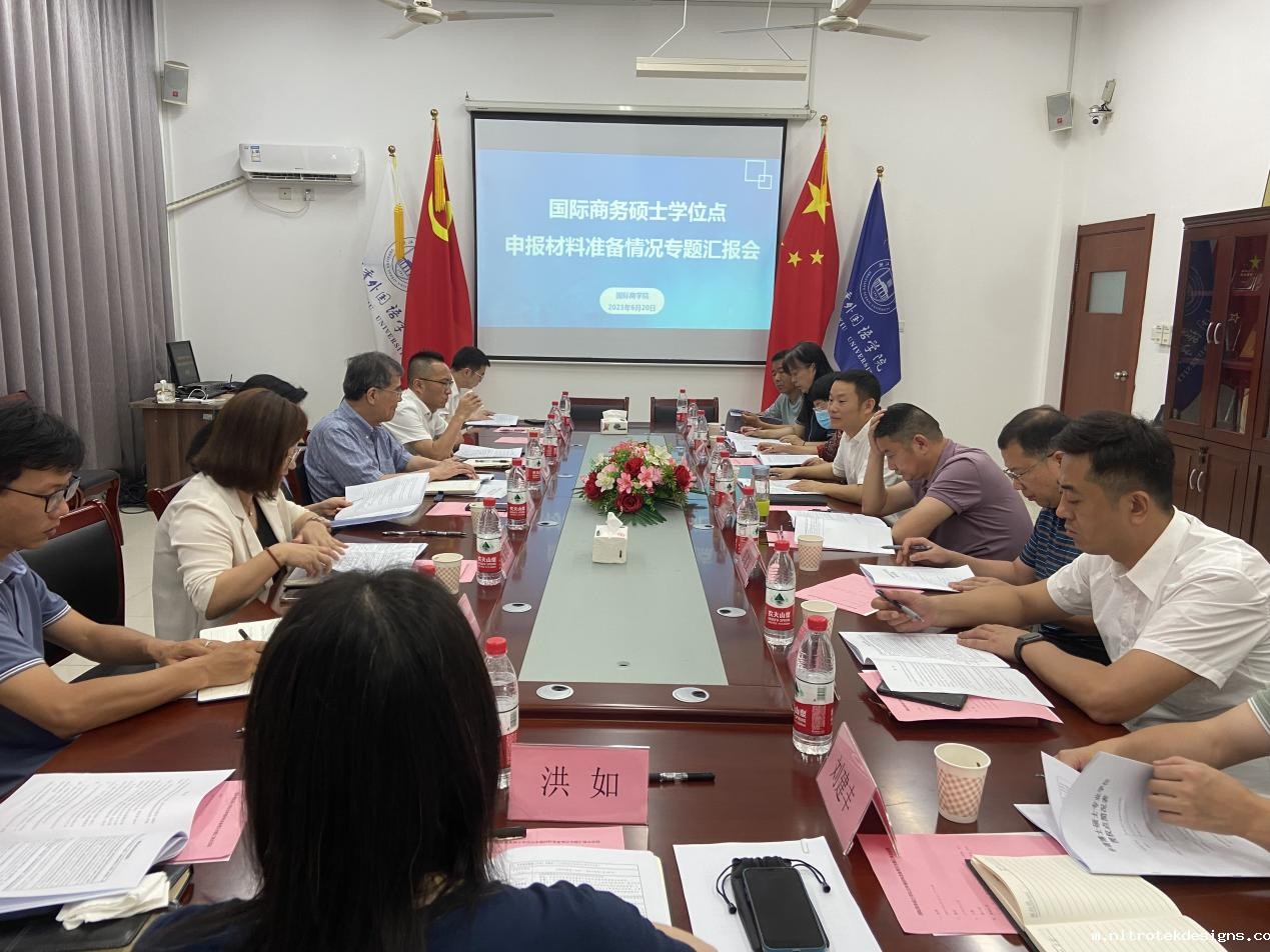 会上,国际商学院院长杨小平汇报了近期国际商学院就国际商务硕士点培育工作所开展的一系列工作。首先从已有授权点情况及人才培养、就业情况切入,进行需求分析,并对专业学位申请的必要、特色与优势进行介绍;其次,对师资队伍进行讲解,包括专任教师、行业教师和骨干教师等的数据呈现;最后,结合现状,分析了人才培养情况和培养环境与条件。根据国际商务硕士点申报条件“对标对表”,逐条解读了学院具体情况以及对申硕的进程和调研情况。