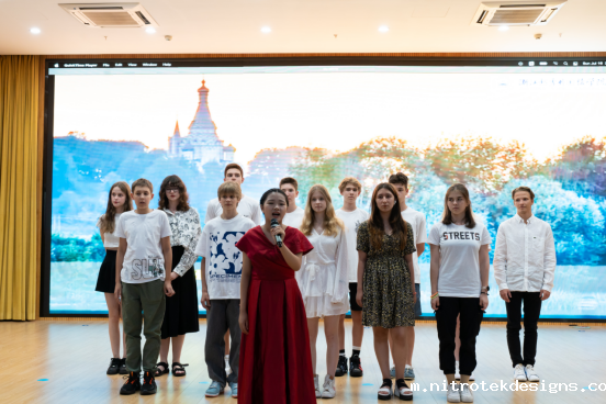 7月16日晚,学校镜湖校区越秀厅充满了欢声笑语。来自俄罗斯1517中学和1298中学近百名师生与越秀师生及教职工子女同台联谊,尽展风采。