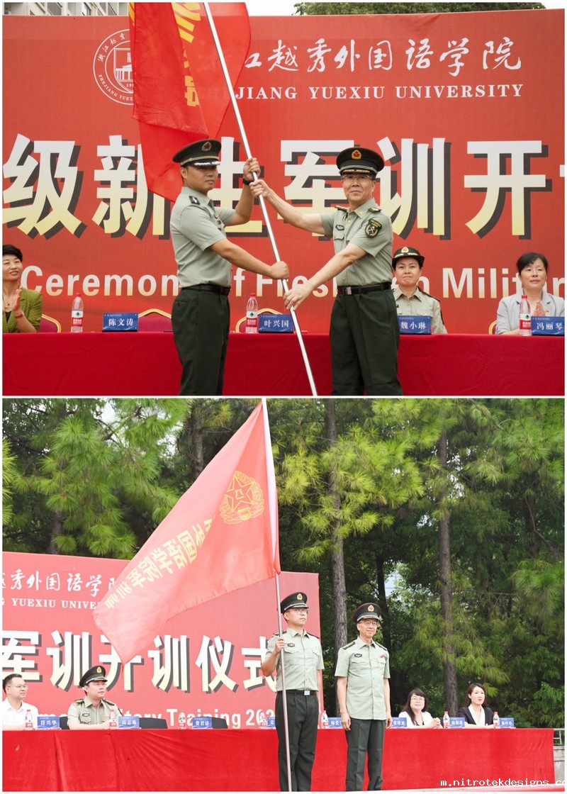 最后,叶兴国、费君清分别授军训师师旗,并郑重宣布2023级新生军训开训。