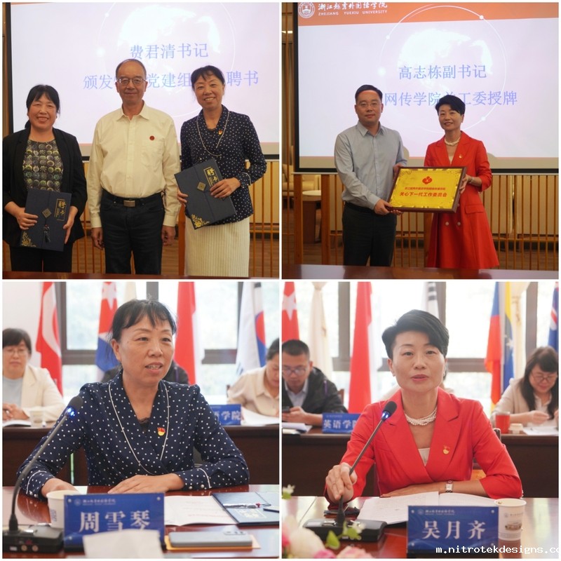 高志栋宣读首批特邀党建组织员聘任文件,并向新成立的网络传播学院关工委授牌。费君清向周雪琴、薛定贞颁发聘书。