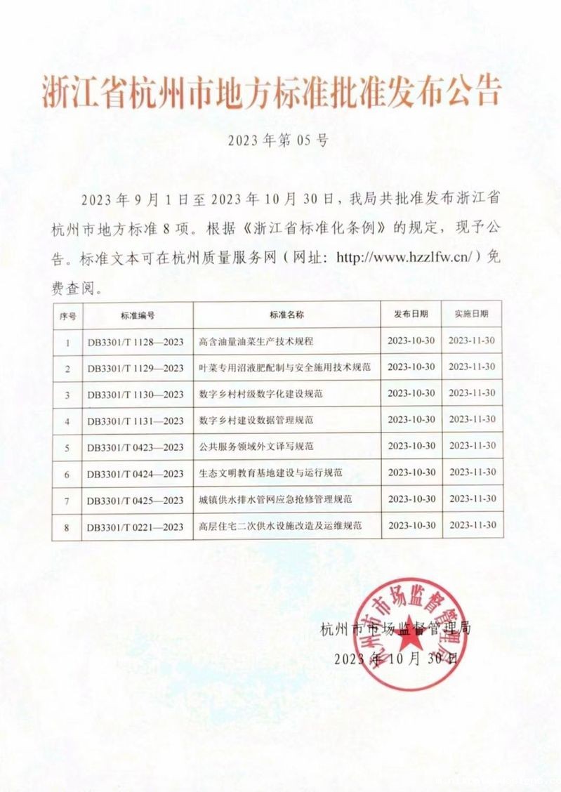 近日,杭州市市场监督管理局发布了《公共服务领域外文译写规范》,这是杭州市首份专门针对公共服务领域外文译写的地方标准。该标准将于2023年11月30日正式实施,成为浙江省首个市域范围内针对公共服务领域外文译写规范的地方标准。