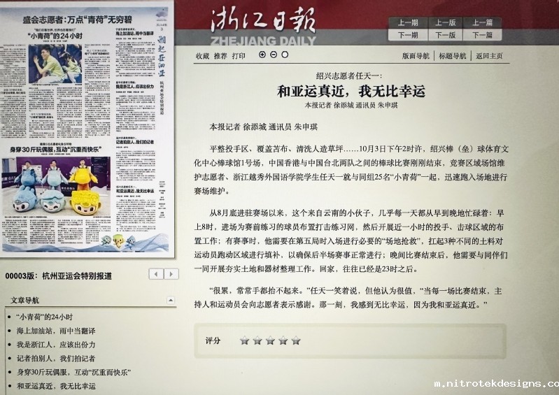 越秀“小青荷”在赛场内外以充沛的活力和热烈的激情书写属于他们的亚运故事,在FOP、技术运行、运动队服务、礼宾接待等领域展示了亚运志愿者的优秀风采。越秀“小青荷”的优秀表现也得到了媒体的广泛关注和报道,获央视《新闻联播》、越牛新闻等媒体平台多次报道。