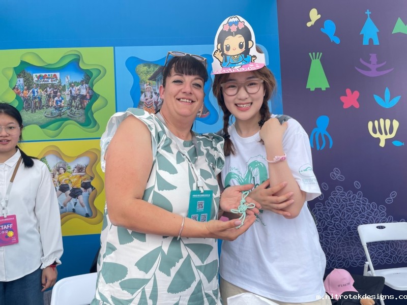 我在保加利亚的摊位挑了一个颜色请摊主帮我做了一根手绳,在她做的时候我突然起兴问她最喜欢什么颜色,我也送你一个中国结吧!她说无论什么颜色都会love it。于是我们就开始一起做各自的小玩意,摊位活动变成了互送礼物,两个人接到成品的时候都特别开心!