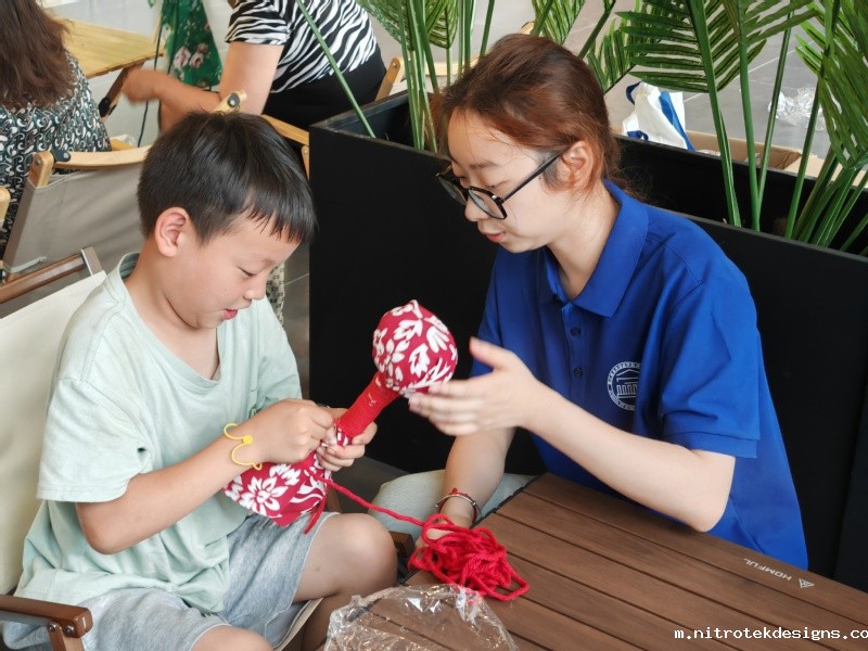 7月12日下午,实践团邀请了小昆村的村民一起制作艾草养身锤。养生锤是一种传统的中医养生工具,制作简单,仅需艾草包、布料、木棒、绳子就可以完成。实践团向村民们科普了养身锤的妙用,并为村民们准备了材料,让村民们可以亲手为自己和家人制作一把养身锤。亲手制作一把简单实用的艾草养生锤,让小昆村的老人小孩都获得了乐趣。