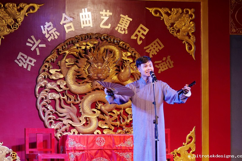 绍兴市文化馆副馆长邓娜(左)主持展演活动