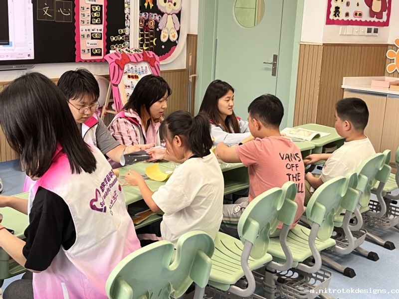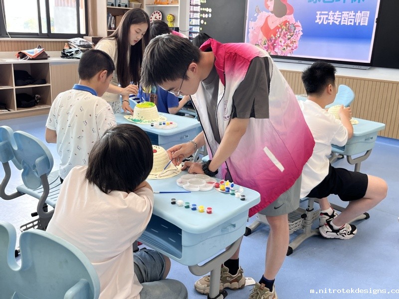心理辅导课程则巧妙融入了美术活动,采用互动游戏作为媒介,深化了情绪管理、自我认知和社交技能的教学,创造了一个既富创意又具疗愈性的环境。孩子们在志愿者的引领下,学会了制作个性化且实用的时尚防晒帽、富含文化底蕴及现代气息的油纸伞、探索色彩斑斓世界的万花筒……这个过程不仅是艺术才能的展现,更是一种情绪表达和自我实现的途径。每一幅作品都是孩子内心世界的独特映射,帮助他们在创作中找到快乐与成就感,有效促进他们情绪的积极转化。