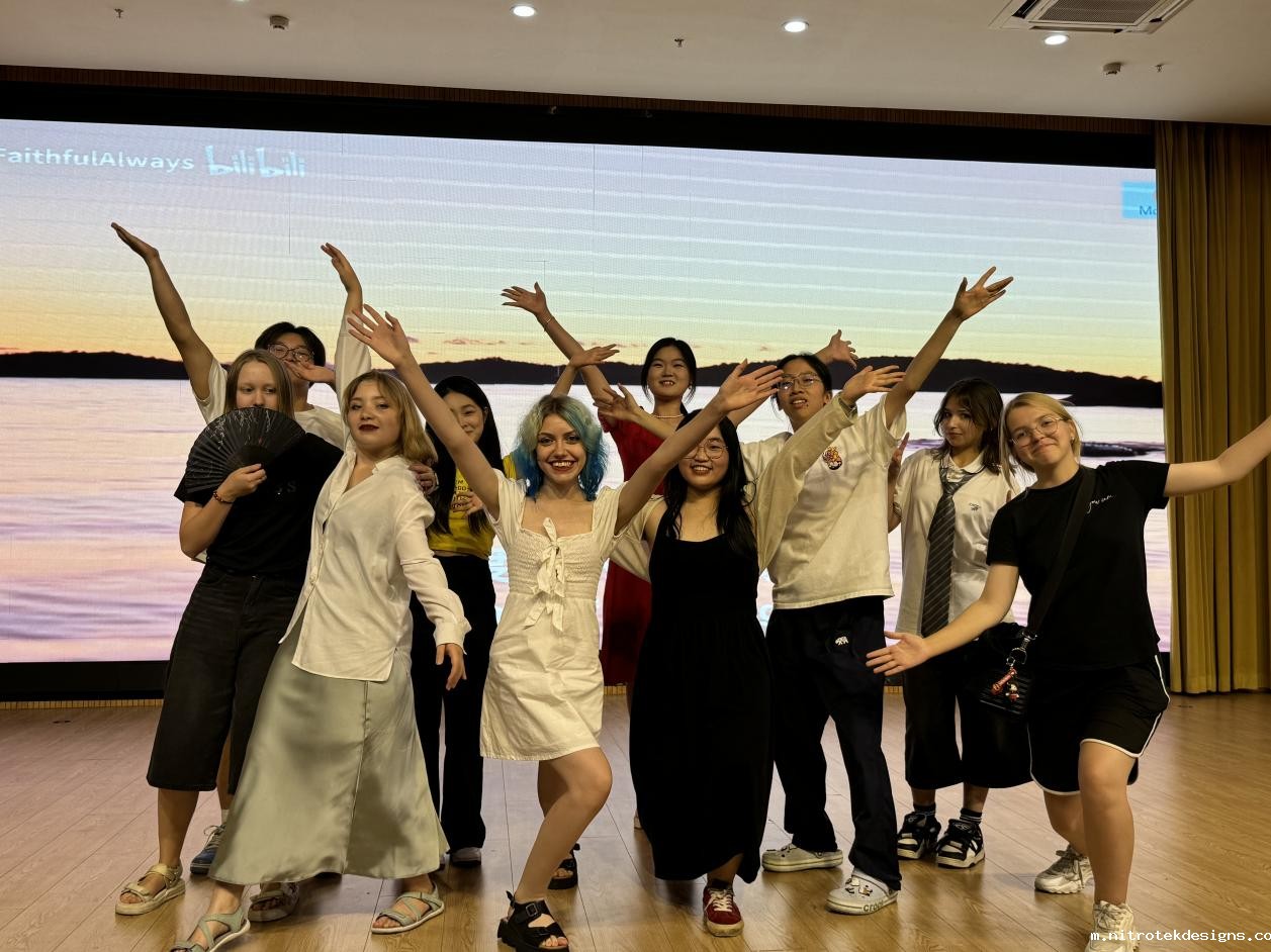 7月15日,留学生学院为学生们准备了中外学生联欢晚会,志愿者老师们和中俄学生们轮番上场,表演了歌曲联唱、戏曲、古筝演奏、街舞、敦煌舞蹈、钢琴伴唱、大合唱等节目。