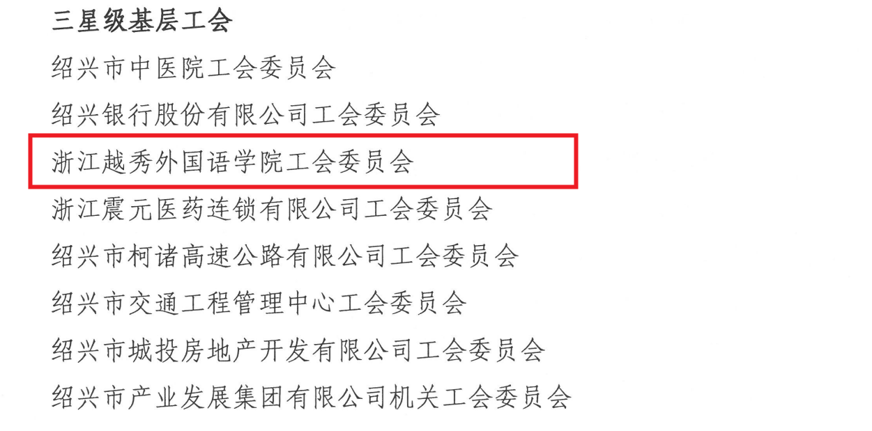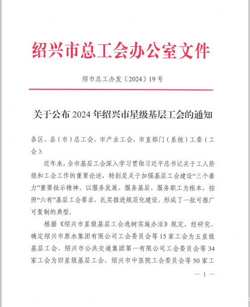 近日,绍兴市总工会公布2024年星级工会名单,星空app官方网站登录入口工会获评“三星级基层工会”。