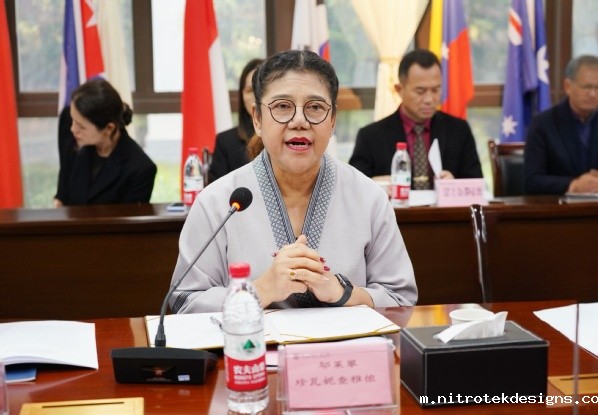 泰国华侨崇圣大学校长邬莱攀·珍瓦妮查雅侬校长在会上致辞。她指出,华侨崇圣大学是由泰国华人社群和泰国最大的华人慈善机构共建,致力于提供不区分阶级、宗教,无差别且不以盈利为目的的教育机会。华侨崇圣大学与我校开启学生交换项目以来,已经有6批学生参与了该项目。她期待双方进一步密切合作,推动中泰两国间的人文交流。