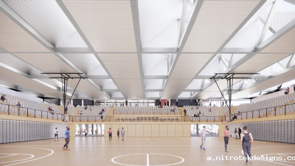 新体育馆选址在镜湖校区图书馆西南侧,包含田径场、网球场、篮球馆、排球馆、羽毛球馆、乒乓球馆、形体训练等功能区域。整体设计秉持 “运动空间需求”与“结构体系设计”匹配结合,创造经济、高效、活跃、复合的校园活动空间的理念。