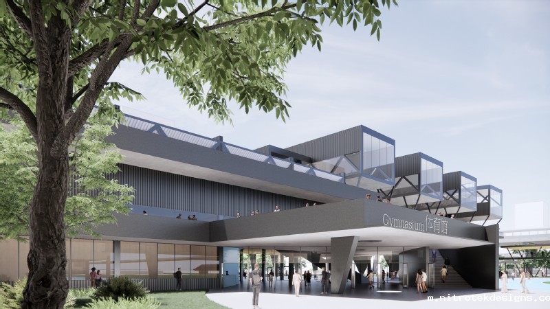 新体育馆选址在镜湖校区图书馆西南侧,包含田径场、网球场、篮球馆、排球馆、羽毛球馆、乒乓球馆、形体训练等功能区域。整体设计秉持 “运动空间需求”与“结构体系设计”匹配结合,创造经济、高效、活跃、复合的校园活动空间的理念。