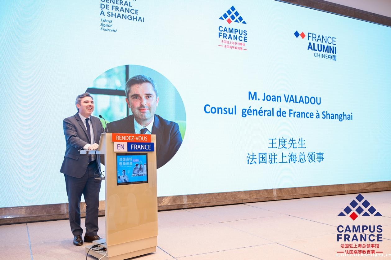 展会现场设置了院校咨询、专题讲座和留法学友分享等多个环节。法国驻上海总领事王度(Joan Valadou)先生亲临现场并发表致辞。他详细介绍了法国高等教育的优势特色,强调了中法教育交流的重要意义,并热情欢迎中国学生选择法国作为留学目的地。在随后的交流环节中,同学们与各高校招生官进行了面对面的深入沟通。