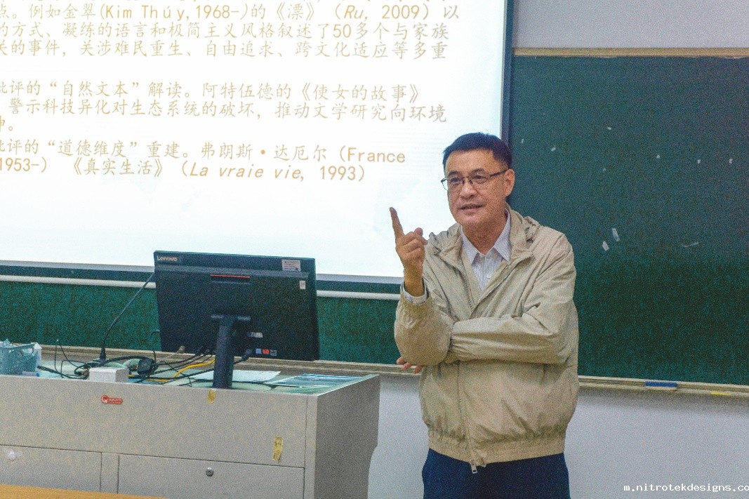11月11日,华中师范大学黄晖教授以“外国文学研究中的前沿与热点问题:以非洲文学为中心”为题,分析当代外国文学研究的新动态与发展趋势。黄教授指出,学科呈现多样化与跨学科特点,从经典作家研究扩展至文学与文化综合探索。他通过数据分析揭示研究重点、方向及问题,强调全球视野与跨学科方法对于推动外国文学研究及学术话语体系建设的重要意义。