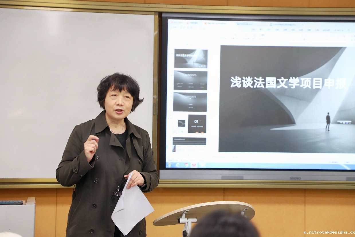 10月28日,我校世界文学与区域国别研究院李建英教授以“浅谈法国文学项目申报”为题,讲解科研项目申报逻辑与学术表达方法。李教授梳理了2020—2025年国家社科基金及教育部法国文学研究的主要选题方向,指出近年来中国学界对法国文学与文化研究的关注度显著提升,选题呈多元化与跨学科趋势。在谈及申报书写作时,她强调选题需具创新性和前瞻性,并结合实例讲解如何在研究背景与意义部分准确呈现学术价值。