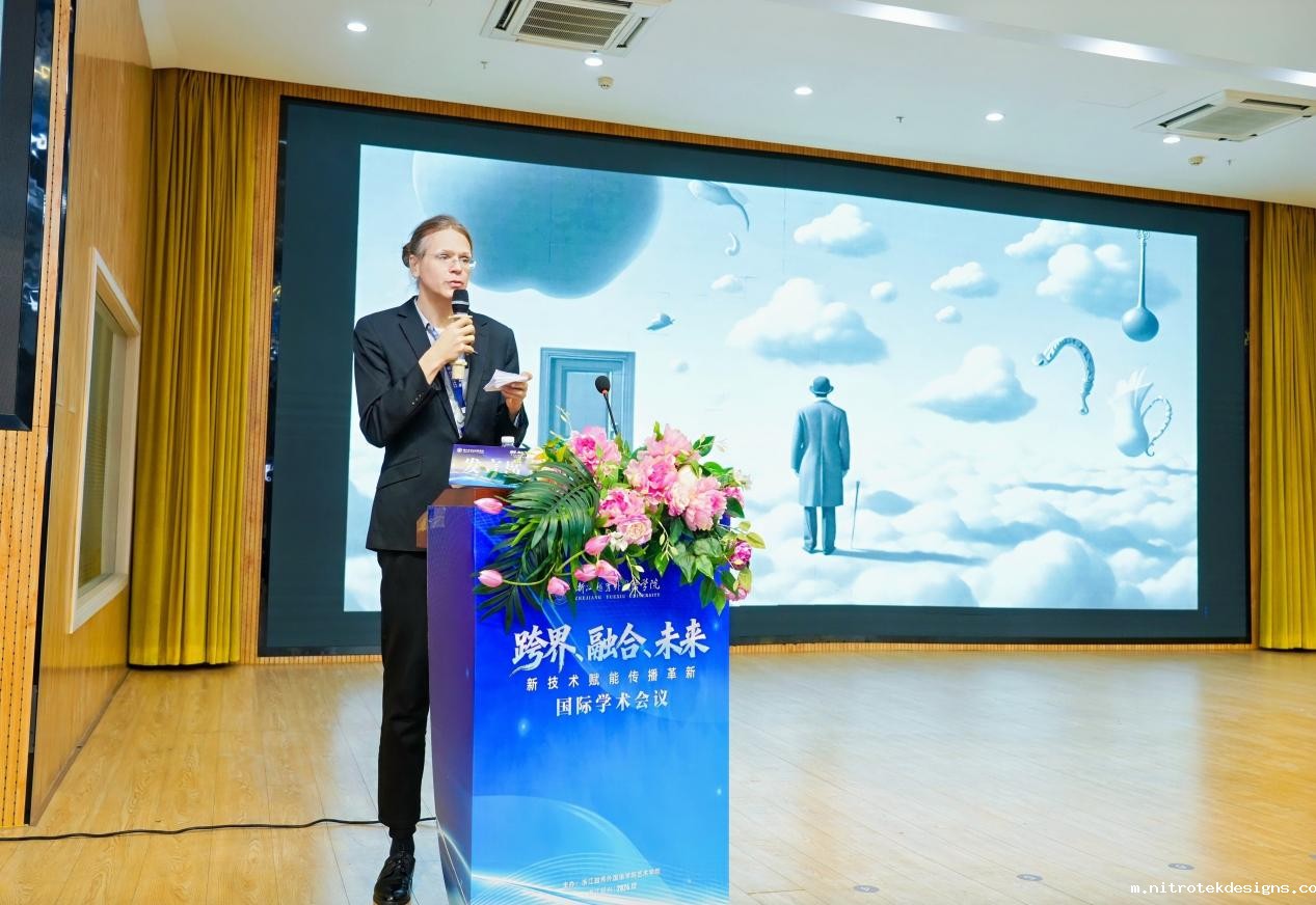 来自海外的专家同样带来了精彩的发言。来自澳大利亚的Max Schleser教授在题为《The Future is Now》(未来就在眼前)的演讲中以移动叙述的视角,展望了未来视觉传播的发展。同时,分享了自己对新技术发展潜力等方面的直观感受。来自新西兰的Dafydd Sills-jones教授,在题为《The Impact of New Technologies on Communication》(新兴技术对传播领域的影响)的演讲中从国际传播的宏观视角,剖析了新兴技术带来的深远影响,提供了宝贵的国际经验。来自法国的Gaby David教授,在题为《Questioning the Digital Ecosystem》(对于数字⽣态系统的思考)的演讲中聚焦媒介传播的变革,结合国际案例进行分析,观点新颖、内容详实。最后,来自德国的Christoph Stahl教授在题为《Future technology and the end of visual communication as we knowit》(未来技术与视觉传播范式的终结)的演讲中对未来技术与视觉传播范式的变革进行了大胆预判,引发大家对传播形态未来发展的深入思考。
